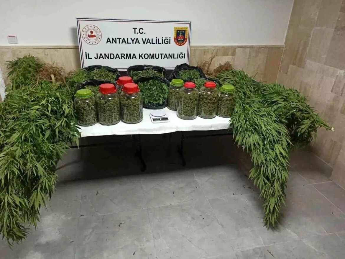 Antalya Vilayet Jandarma Komutanlığı takımları, Korkuteli ilçesinde uyuşturucuya yönelik gerçekleştirdiği operasyonda 43 kilogram skunk ve 15 kök skunk bitkisi ele geçirdi.
